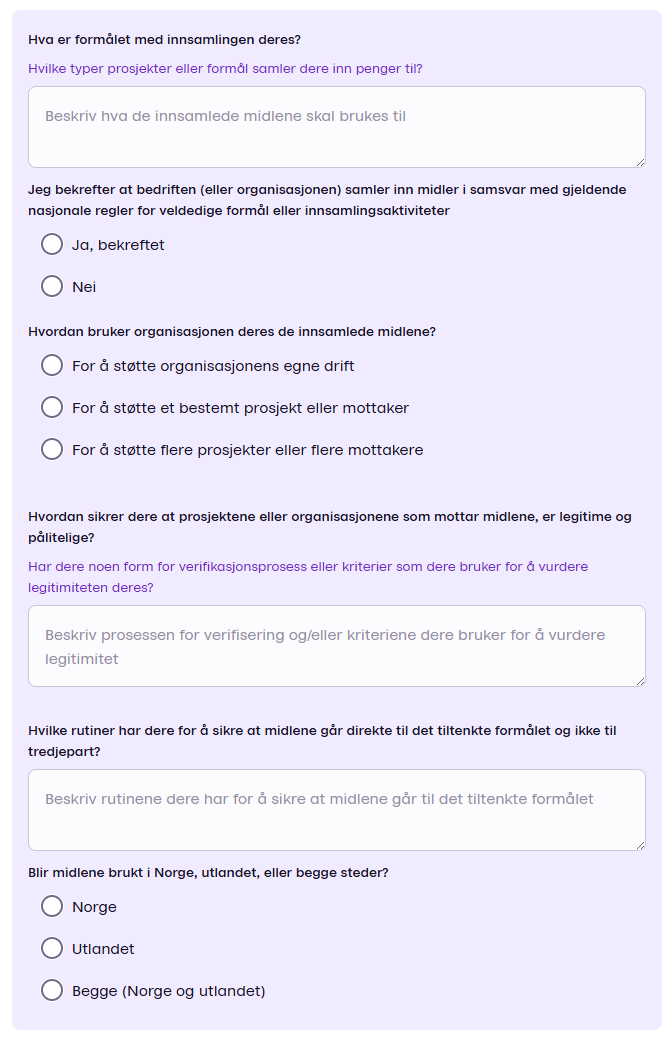 Velg den kategorien som passer deres organisasjon best. For de aller fleste vil det være aktuelt å velge en av valgalternativene under "Ideelle, politiske eller religiøse organisasjoner":