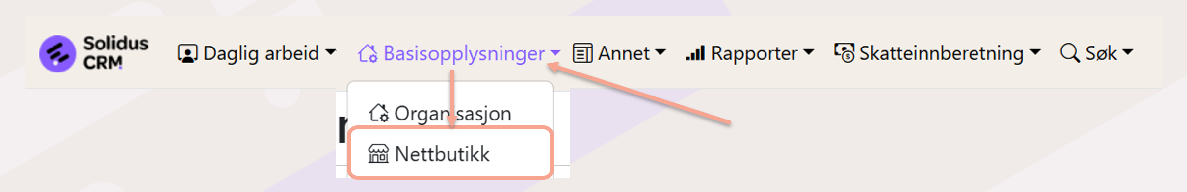 Du finner nettbutikkskjemaet under Basisopplysninger - Nettbutikk.