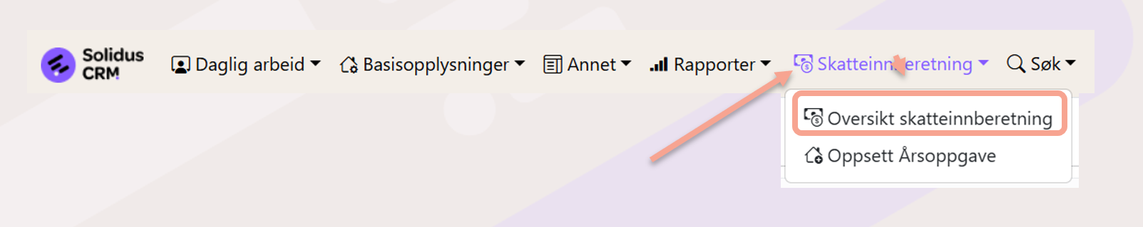 Dersom dere har transaksjoner som ikke har kommet inn i Solidus CRM, kan disse registreres manuelt via Skatteinnberetning - Oversikt skatteinnberetning.