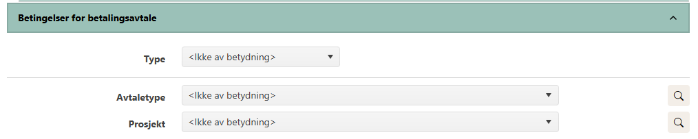 Filtrer på feltene for kontakten eller betalingsavtalen for å begrense hva som skal trigge regelen. Hvis for eksempel du har valgt at avtalen skal utløses av betalingsavtaler kan du her begrense det til å bare gjelder betalingsavtaler med en bestemt avtaletype eller prosjekt.