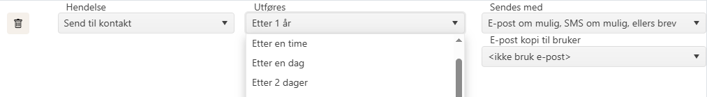 - Send til bruker. Send en e-post til valgt bruker, skal det være flere mottakere må du legge til flere handlinger.
