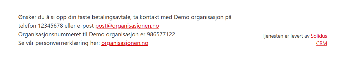 • Nettbutikken må ha footer med organisasjonsnummer og kontaktinformasjon (e-post/telefon) for hvordan giver sier opp avtalen.